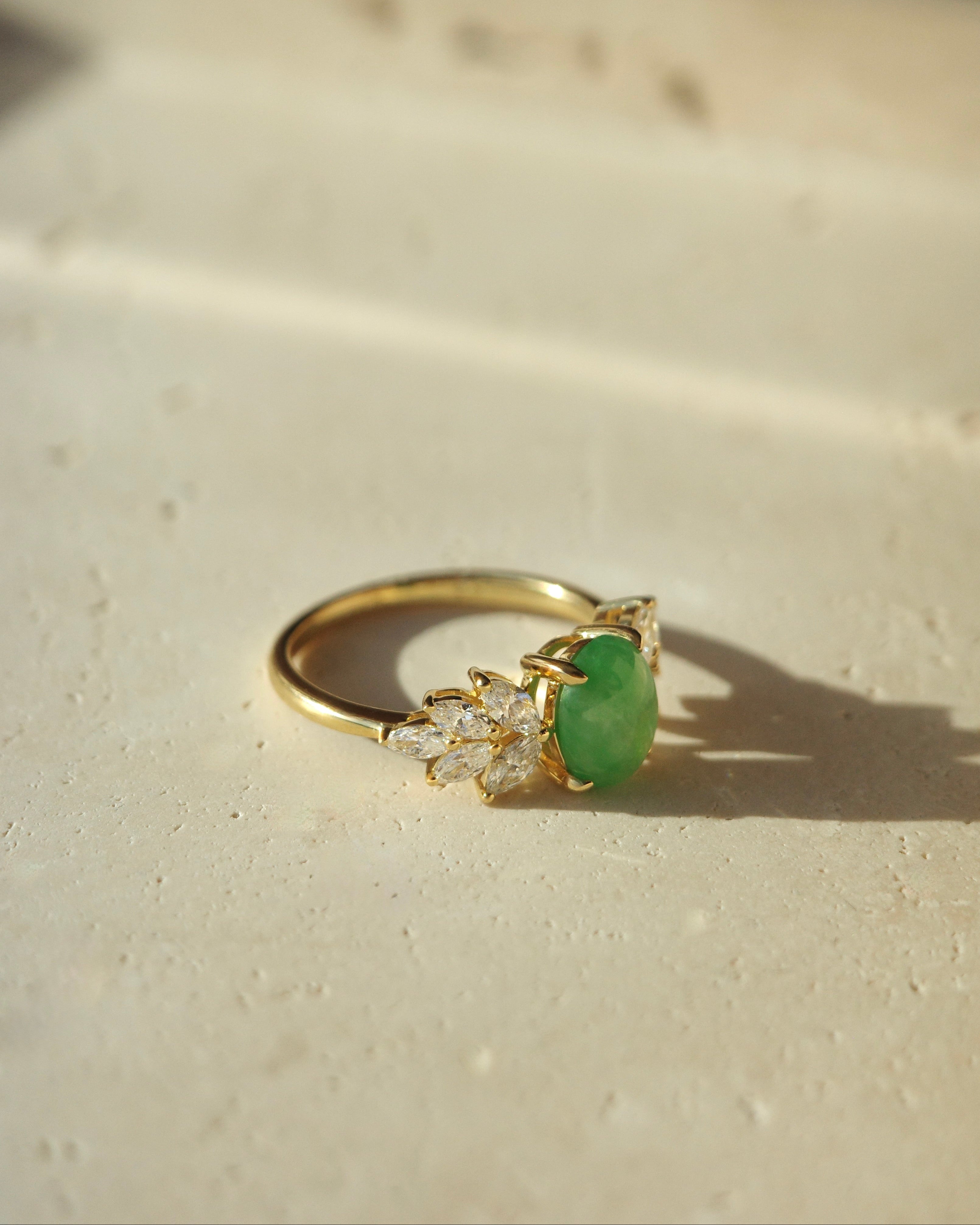 Marquise Jade and Diamond Ring